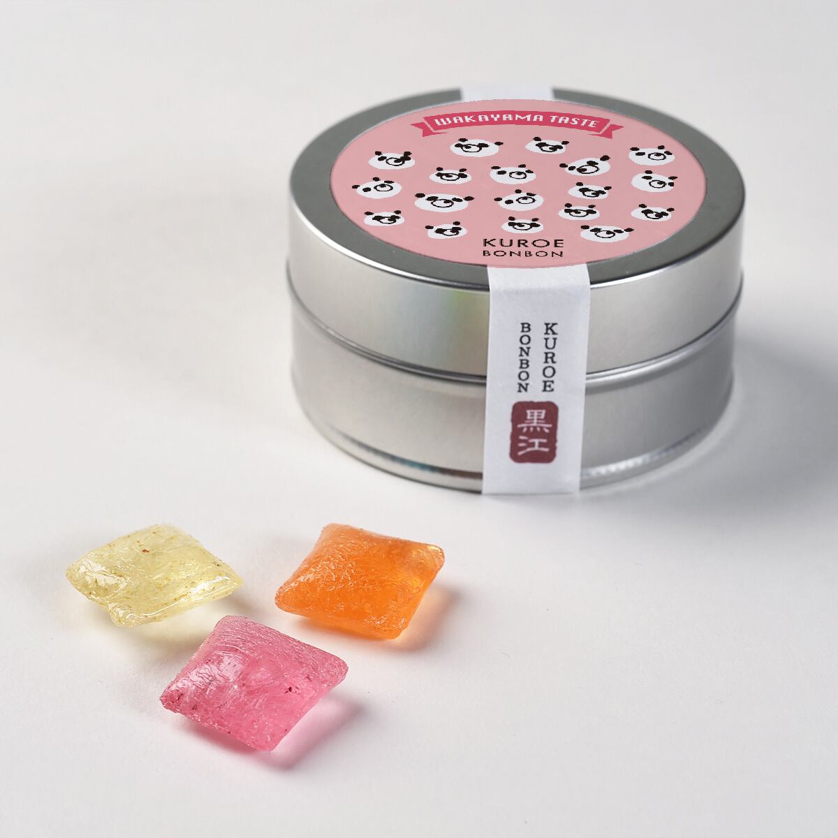 和歌山ゆかりのかわいらしいデザインの缶に入れています。