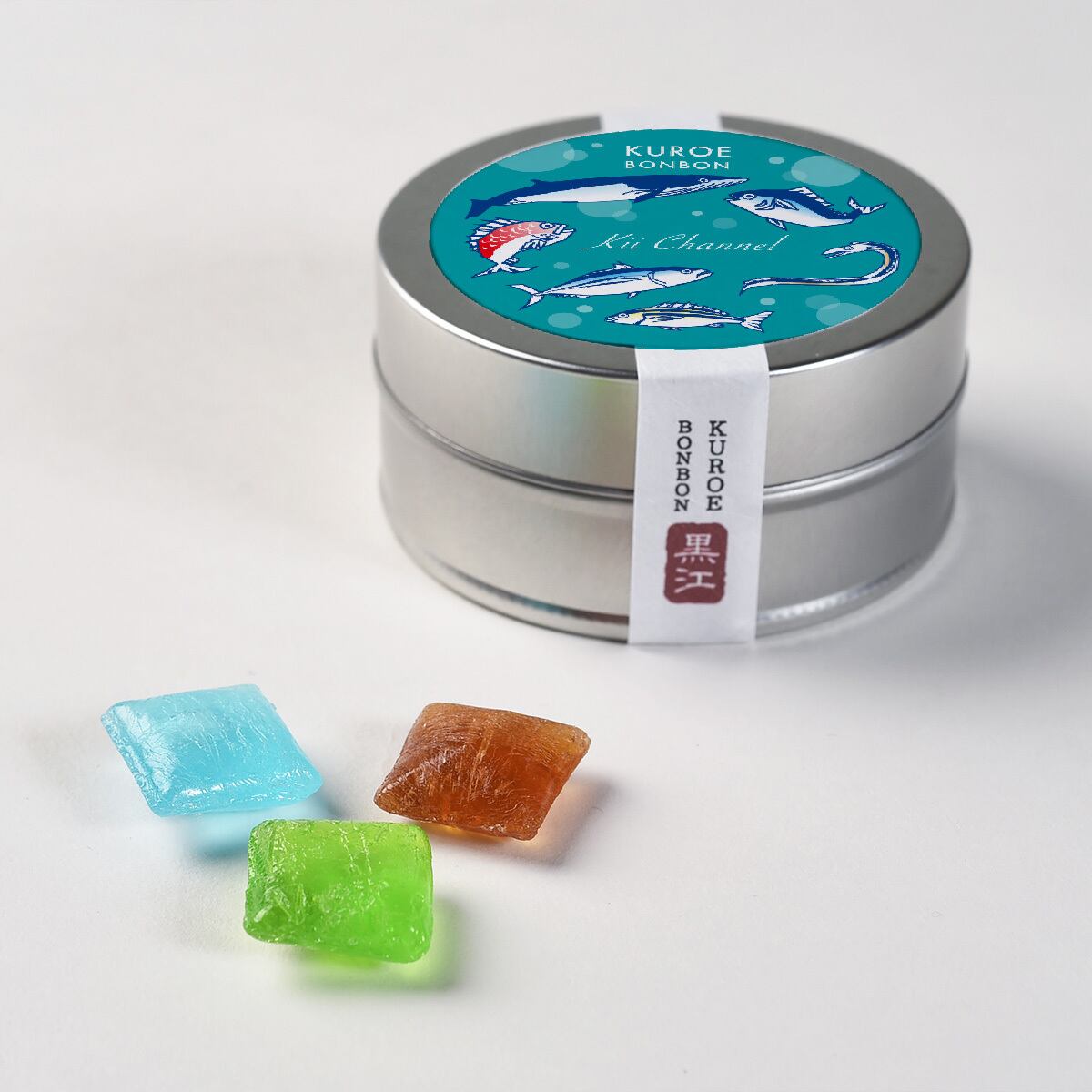 和歌山ゆかりのかわいらしいデザインの缶に入れています。