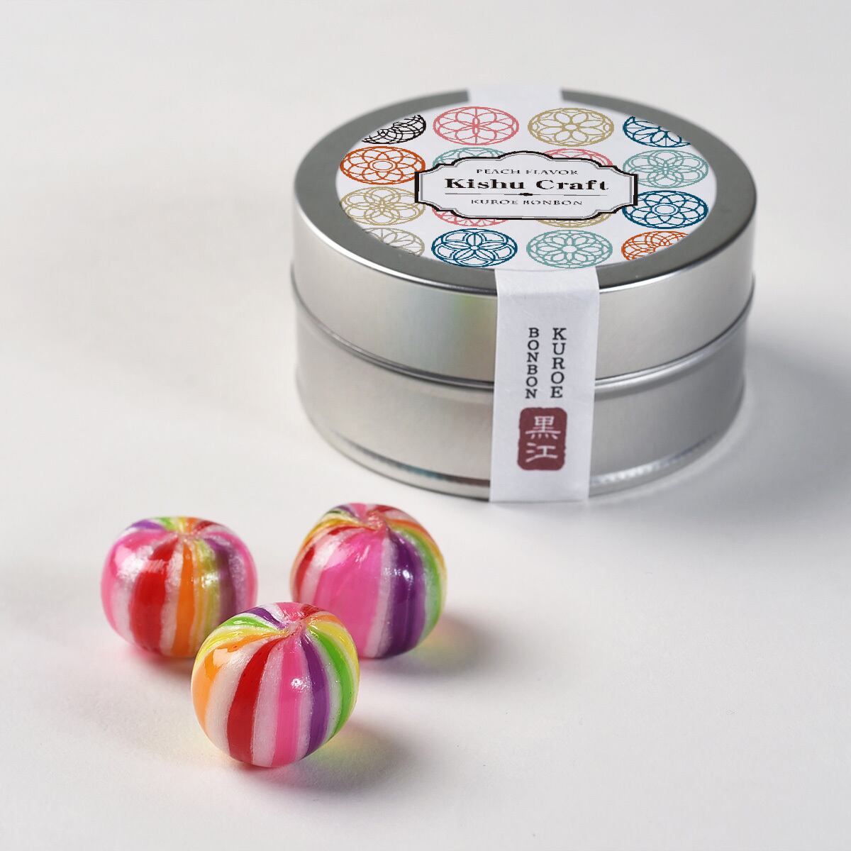 和歌山ゆかりのかわいらしいデザインの缶に入れています。